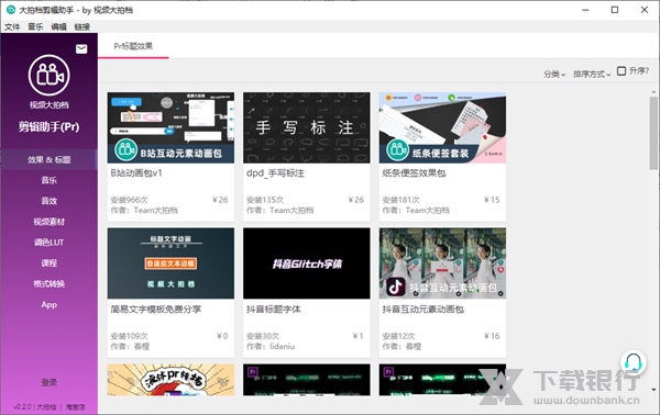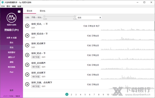1、大拍档剪辑助手提供视频剪辑素材,可以在软件下载常用的素材添加到时间轴使用