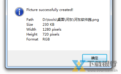 5、单击确定按钮之后在主界面之后会弹出下图所示的提示信息,在这个提示界面中我们可以看见图片的大小、格式以及保存的位置