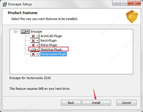 7、这里只选择sketchup-plugin,其他关了,再点击install安装;