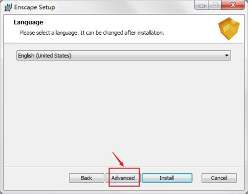 4、默认English语言,点击advanced;