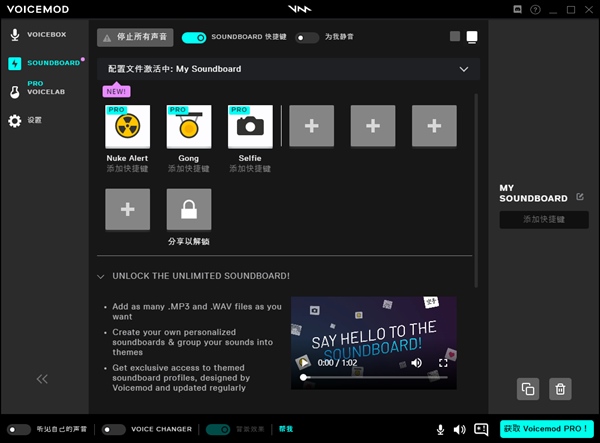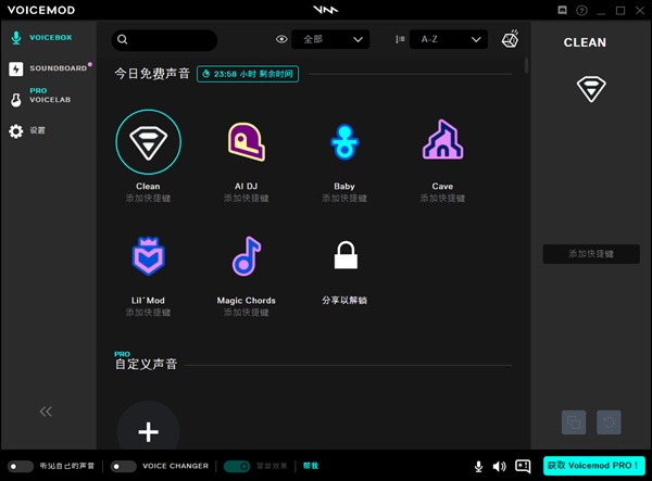 Voicemod专业版是一款变声器软件,软件中有许多人物声音,你可以在lol、王者荣耀、吃鸡等游戏进行播放,完美兼容,可以逗的队友开怀大笑。不仅这样,软件拥有非常自由的自定义变声功能,不仅仅局限于男声变女声或者女声变男声。小编今天为大家带来的是专业版,附带破解补丁,从而无限制免费试用所用音效,无需购买,即可拿来免费试用,去游戏内恶搞你的队友吧!