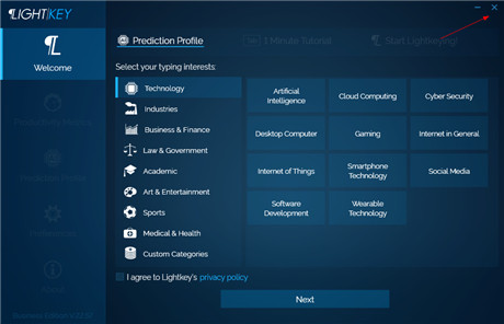 此应用程序可以根据您的键入行为建议单词的潜在补全内容,从而帮助您节省键入时间。这意味着该应用程序将研究您的工作方式并开发配置文件,以便它可以尽可能高效地满足您的需求。启动应用程序时,系统将提示您输入名称,选择键入样式,指定预测语言并从广泛的预测类别和子类别中进行选择。键入样式指示您在键入时是集中在屏幕上还是键盘上。