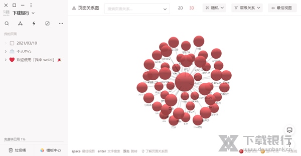 8、更新双向链接之后,页面关系图做的非常好看,支持2D、3D视图和多种布局方式,用虚线动画表示引用方向,总体效果很棒。