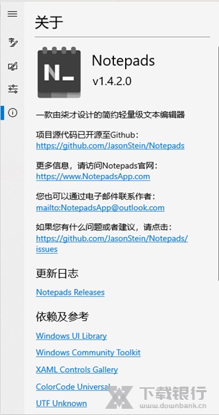 Notepads是一款电脑文本编辑器,软件其实就相当于一个记事本一样,当你有什么想记得事物都可以记录在该软件上, 而且还能够支持浏览器一样的多个标签,而又能够支持窗口置顶、藏到系统托盘、自动保存等便利的功能,让你能够更快速完成文本的编辑工作。如果您不想使用其它商用的专业文本编辑器,那么 Notepads 可谓算的上专为 Win10 开发的新新形替代工具。