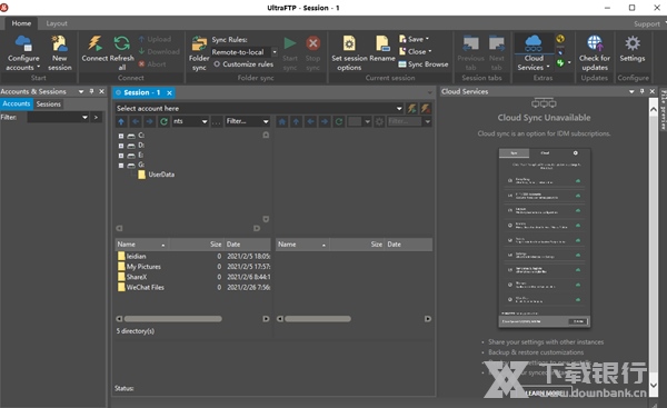 启用后,UltraFTP会自动浏览到本地或远程端的相应文件夹(如果存在)