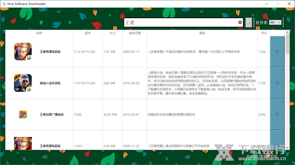 Pure Software Downloader 是一款挺不错的软件下载工具,简单好用又方便。它整合了腾讯和360的软件资源库,用户搜索到的都是纯净的软件,不用再去其他地方找资源了。界面设计得很简洁清爽,基本没有太多复杂的功能,适合新手也能轻松操作。