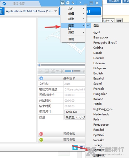 5、然后,我们点击右上角的“主菜单”按钮,然后对输出目录、视频、音频、字幕等参数进行设置。