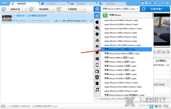 6、我们在选择输出格式选项中选择您要转换的视频格式。