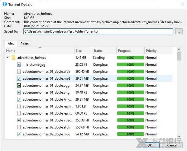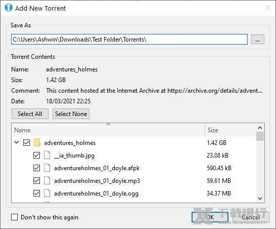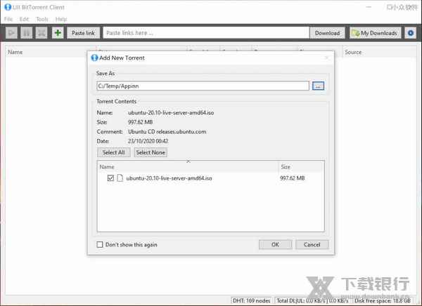 单击文件菜单>打开,以加载一个种子文件。或只是将磁力链接拖放到界面上以添加种子。LIII将连接到可用的种子以获取元数据并显示可下载的文件。您可以通过选中每个文件旁边的框来选择所需的文件。点击确定按钮,程序将开始下载内容。