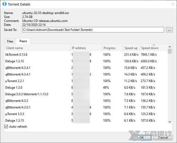 “种子详细信息”菜单选项可用于管理种子文件,以及查看有关当前对等种子的信息。