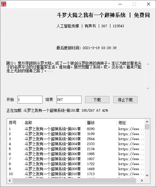 软件的使用方法也很方便,只需要在指定栏输入网址,点击分析后就能开始下载了。下载的文件会自动保存到运行路径,并且还会按序号排列,管理起来特别方便。如果觉得顺序不对,还能选择倒序下载。总的来说,这款工具不仅功能强大,而且操作简单,对于喜欢听喜马拉雅小说的人来说绝对是个神器!如果你也是个 audiophile 或者 podcast 爱好者,这个工具一定能让你的生活更丰富多彩。