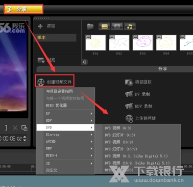 2、点击软件顶部的分享按钮,然后点击【创建视频文件】。您可以根据您的实际情况决定您要选择哪一种。