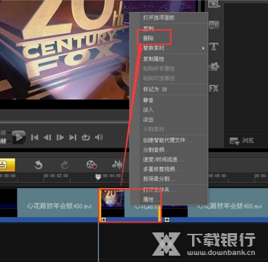 6、然后选择你需要剪辑出去的视频内容,右击选择【删除】,点击一下。
