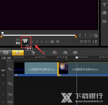 4、播放到你需要剪辑的位置的时候,点击一下暂停播放。