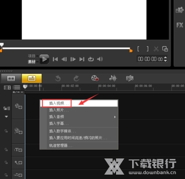 1、首先打开你电脑上的软件,在第一行的视频轨里,右击点击【插入视频】导入你需要剪辑的视频。