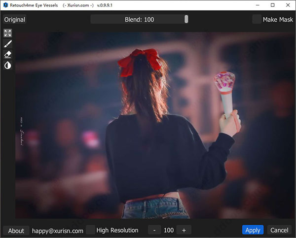 会自动检测照片中的眼白并进行修饰。它无缝去除血管和发红。