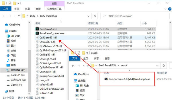 1、在本站下载得到DxO PureRAW源程序及crack破解文件夹;