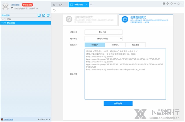 智能模式:基于人工智能算法,只需输入网址就能智能识别列表数据、表格数据和分页按钮,不需要配置任何采集规则,一键采集。