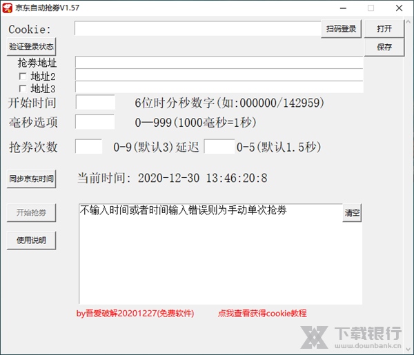 京东自动抢卷是一款为京东用户设计的京东辅助工具。软件界面简洁明了,非常适合经常使用京东购物的用户们的。软件能自动的帮助用户抢到商城中的优惠卷,有同步京东时间绝不会遗漏忘抢。时间抢购次数用户也可在软件当中自行设置,在也不用担心抢不到优惠而烦恼了,直接在第一时间帮用户把优惠抢到手。而且操作上手非常的简单只需你要自己的cookie值输入到输入框中便能自动登录你的京东号进行秒杀抢购拉。