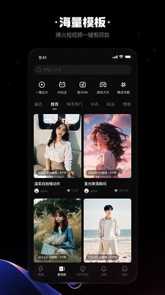 快手快影在操作体验和功能玩法方面表现出色。进入应用后,用户会立刻感受到熟悉的快手界面,这对于快手用户来说将会非常亲切。但即使您不熟悉快手,它的功能也被明确地设计得简单易懂,能够让您快速上手。总之,无论您是想制作搞笑段子、短视频、还是创作有趣的内容,快手快影都能满足您的需求。
