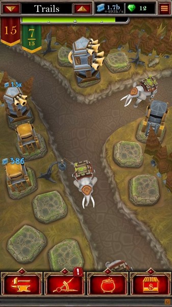 2、塔防建筑物需要玩家使用砖石搭配材料强化,这样高度的耗材,逼迫玩家不断闯关挑战。