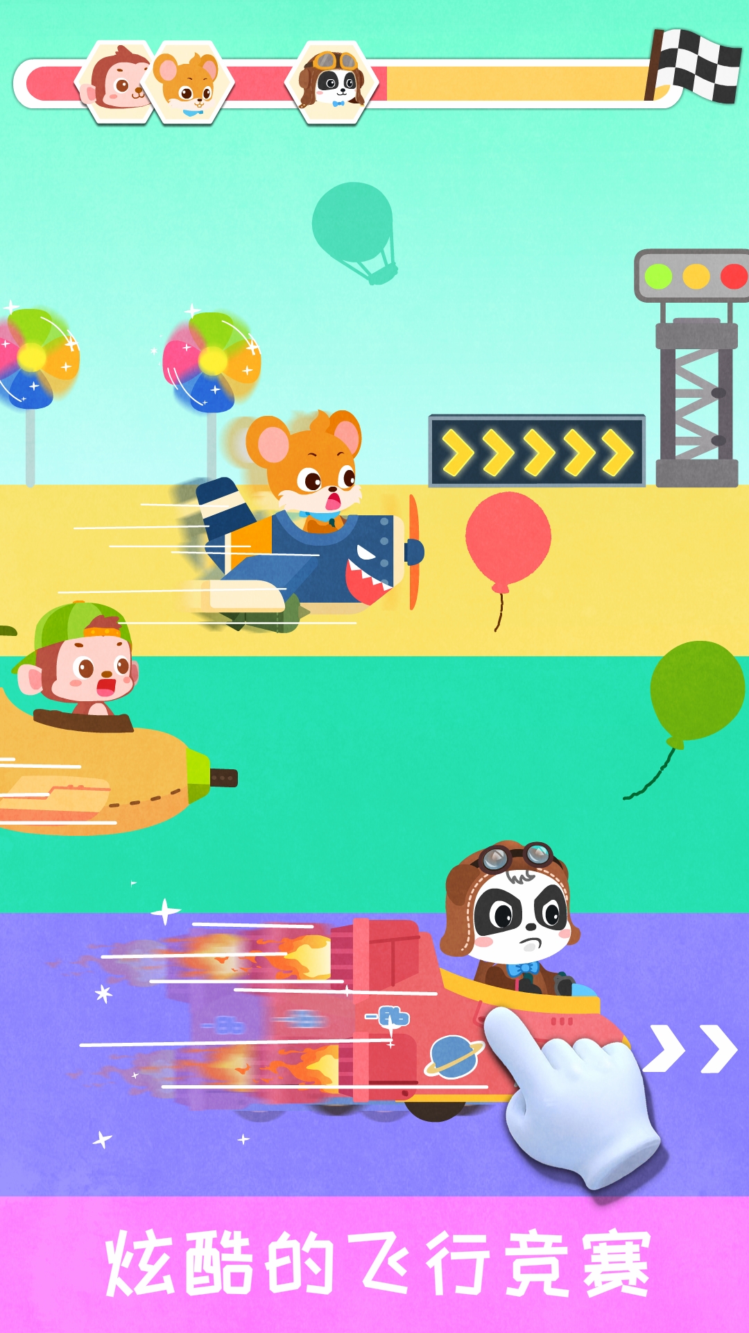 这款游戏叫“宝宝飞行员”,是给宝宝玩的早教游戏,挺有意思的。孩子能当小飞行员,开各种酷炫飞机环游世界,还能参加飞行比赛,修飞机什么的,玩法多样。游戏里有鲨鱼飞机、香蕉飞机这些特别的机型,还有冒险任务,比如躲闪电、高空接物啥的,既好玩又能锻炼反应力和专注力。