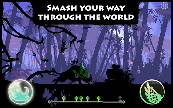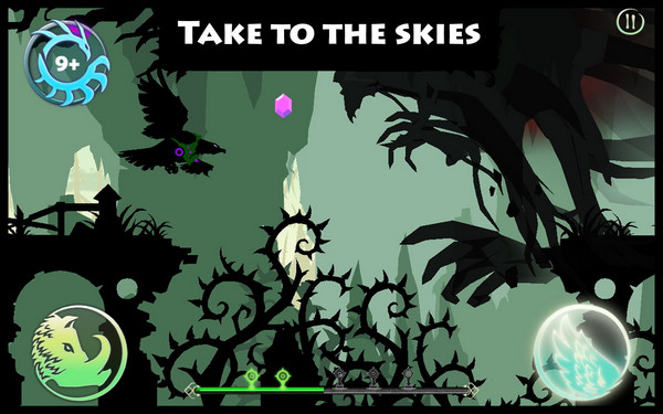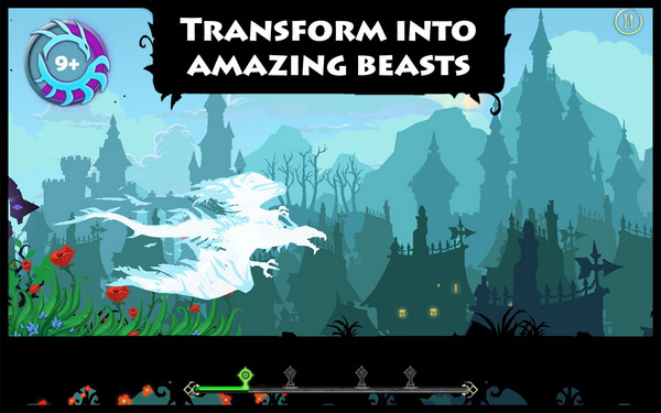 图腾跑酷采用剪影般的人物和场景设计外,还将极其考验反应的变身系统融入至游戏中去,玩家不再是无脑的一跑到底,途中有不少障碍和敌人都需要玩家改变形态去应对。