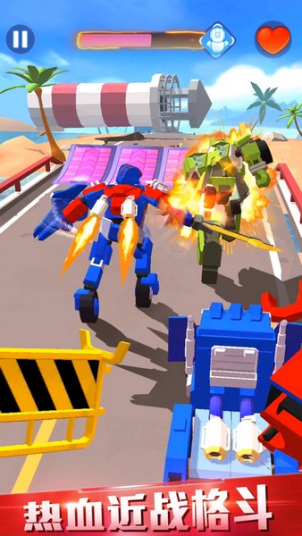 1、下载进入汽车人变形热血赛车游戏,通过滑动屏幕来控制汽车人移动;