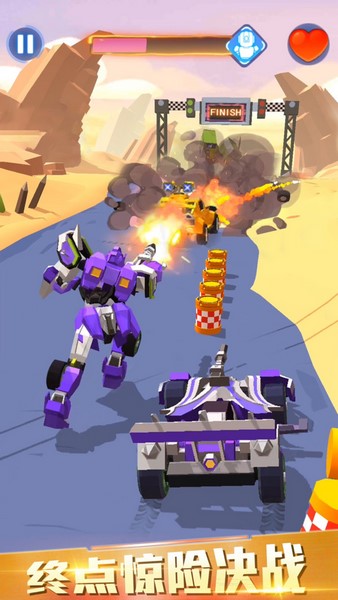 2、你需要撞毁其他车辆,争夺比赛的胜利,并获得变身能力;