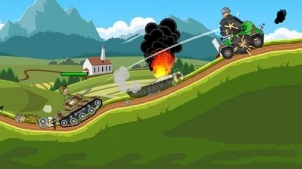就像图片里的坦克这样,主炮能够攻击前方的敌人,火箭能够攻击后面的敌人,在敌人刚出现的时候就将其消灭,这样坦克的上方全是朗朗晴空,我们就能轻松过关啦。