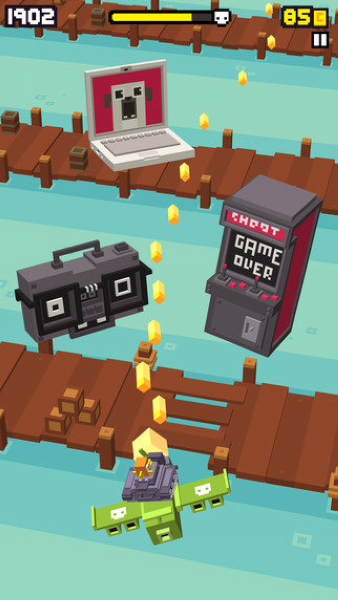 各种高式的方块人会向你分社五颜六色的子弹,甚至有的外星人还会向你发射鞋子,袜子等垃圾作为攻击,也是让人哭笑不得。在打击敌人的同时,玩家好有一定几率收到礼物作为奖励,从而开启散射等绝技,玩起来还是很有意思的。