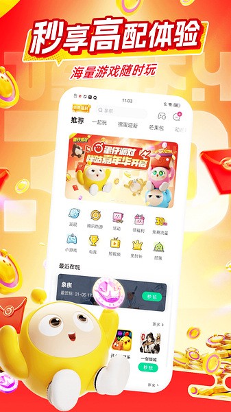 咪咕快游是一款由咪咕互动娱乐有限公司开发的云游戏平台。现在的手机游戏是越来越大,但是家里网速又不行,该怎么办呢?咪咕快游app来帮您!咪咕快游利用5G高速网络的特点,让用户下载游戏的速度达到巅峰,同时,你也无需担心手机的内存不足,因为咪咕快游拥有云游戏库,让你的游戏不再被本地的内存所束缚!且现在新用户在首日即可享受会员快速通道特权,而热门大作也可以直接在平台内进行体验,还有超多精彩活动如好友助力赢好礼更增添了互动趣味。咪咕快游创新玩法,通过在线体验,让玩家沉浸于游戏中,无需担心手机内存不足,还有专业的电竞赛事等你体验。每日任务和丰富奖励使玩家在游戏中获取更多收益,而实时存档则为全方位体验游戏魅力提供支持。