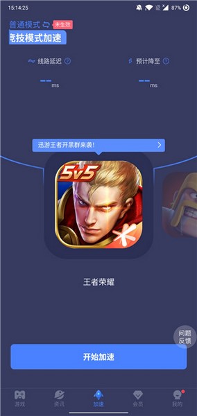3、第二段延迟为成功开启加速后,从迅游节点到游戏服务