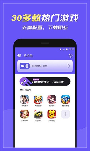 八爪鱼app是一款能够为玩家们带来全新的手游体验的工具,只需要简单几步就能够了解手柄以及键盘、鼠标等外设来更好地进行操作。针对一些特殊的游戏,大家也能够自由编辑按键映射等,作为一款专业易用的键位映射工具,八爪鱼手游大师app支持云端同步所有设定,还有超多精彩游戏推荐,一键就能够轻松完成添加,享受外设所带来的乐趣。