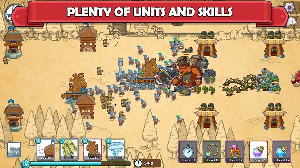 1、顶级的军团争霸模式让你爱不释手,在这个奇妙的卡通世界来进行对战。