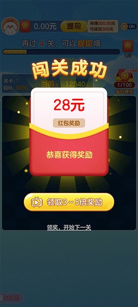 3、玩家们通过上方的关卡挑战,还会随机获取红包奖励呢。