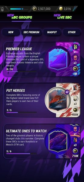 SBC Groups:完整收集有趣的小队建设挑战,以获得精英奖励和独特的卡片。