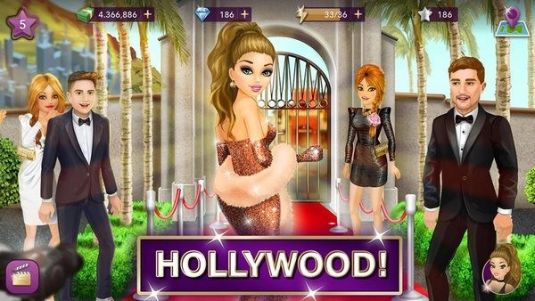 解锁新地点:随着游戏的进展,玩家可以解锁好莱坞、比佛利山庄、曼哈顿、拉斯维加斯等令人兴奋的新地点。丰富的活动:玩家可以参加各种好莱坞的活动,如红毯走秀、电影宣传等,提升自己的知名度和粉丝数量。