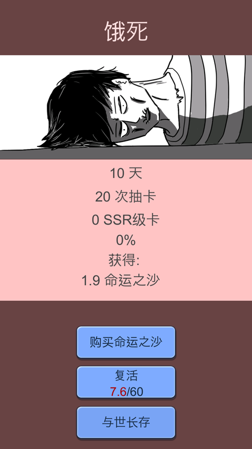 -这也是生存游戏,抽卡的同时记得先让自己活下去,因为你的食物,水,可都是抽卡得来的。你还会生病,记得及时治疗。
