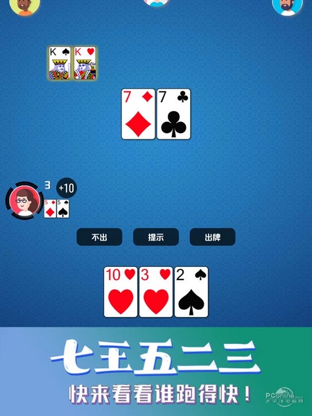 七王五二三是一款休闲卡牌类手游,如果想要放松休闲一下,那么不如来这里打牌放松吧!其玩法轻松休闲,多种不同类型的模式任你随心挑选,一键极速匹配,多人在线互相对决,同时七王五二三游戏还搭配了排位机制,让你天天都能拿到奖励,乐趣无限!