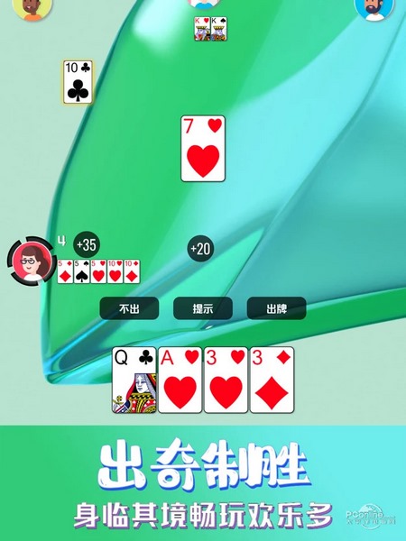 2、出牌:首次由抓到最小牌的玩家出牌,接下来是上一局压牌最大的玩家优先出牌。