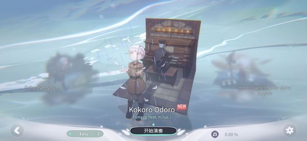 3、每完成一个故事章节就可以解锁一个新的歌曲,左下角是难度提示,点击演奏。