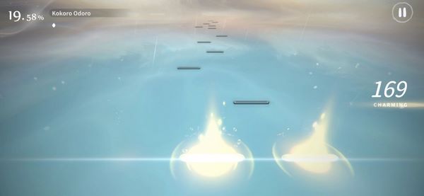 4、然后看准时机打击铺面上不断下落的音符。