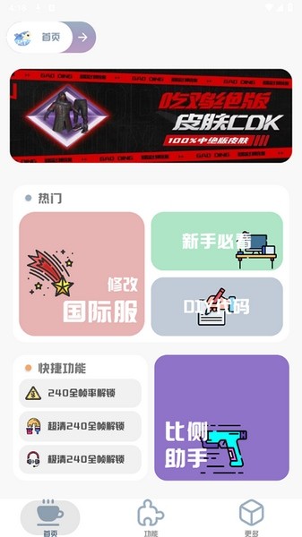 1、极简主义游戏页面允许您一键快速修改画质,享受吃鸡游戏的乐趣。