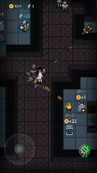 尽量选择在中间的十字路口展开移动攻击,方便快速到对应大门拾取装备。观看广告也可以快速获取装备。