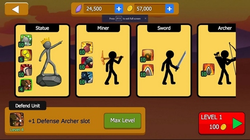 1、控制你的军队在编队或发挥每个单位,您有充分的火柴人的完全控制