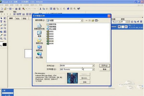 1、用Ulead GIF Animator V5.05打开要修改的GIF动画。点击“文件”→“打开图象”,找到要修改的图片,单击打开按钮
