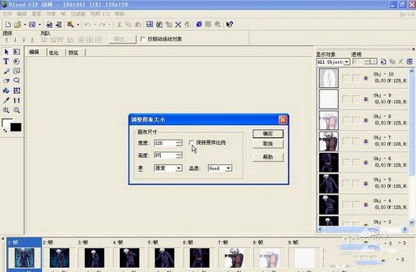 该软件重新设计了用户界面,让你在制作动画图片的时候更方便,这个版本的工作区域已经完全支持真彩色,无论你是在设计还是预览的时候都可以在真彩色的环境下了。同时,一般常用的做动画的流程都已经简化在编辑、优化和预览选项卡之间,很大程度上简化了操作难度。