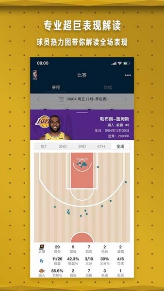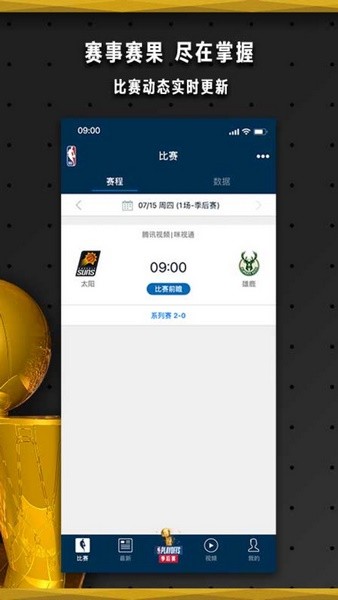 - 查看每场NBA比赛的实时数据、分数和安排表