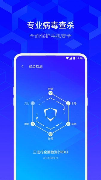 1、一键体检:快速扫描恶意软件、扣费短信、垃圾文件、关键设置项等,全方位掌握手机状况,一键智能修复,为手机保驾护航;